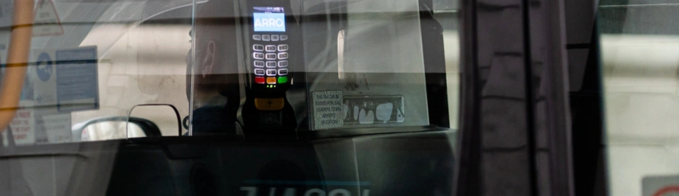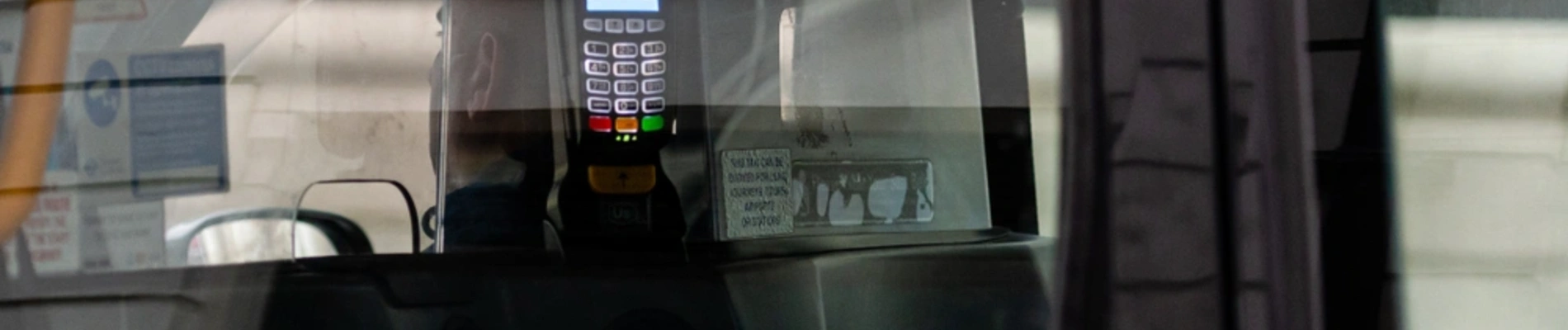 The machine is fixed in the passenger area, so your card never leaves your hand. That makes it safer and easier.